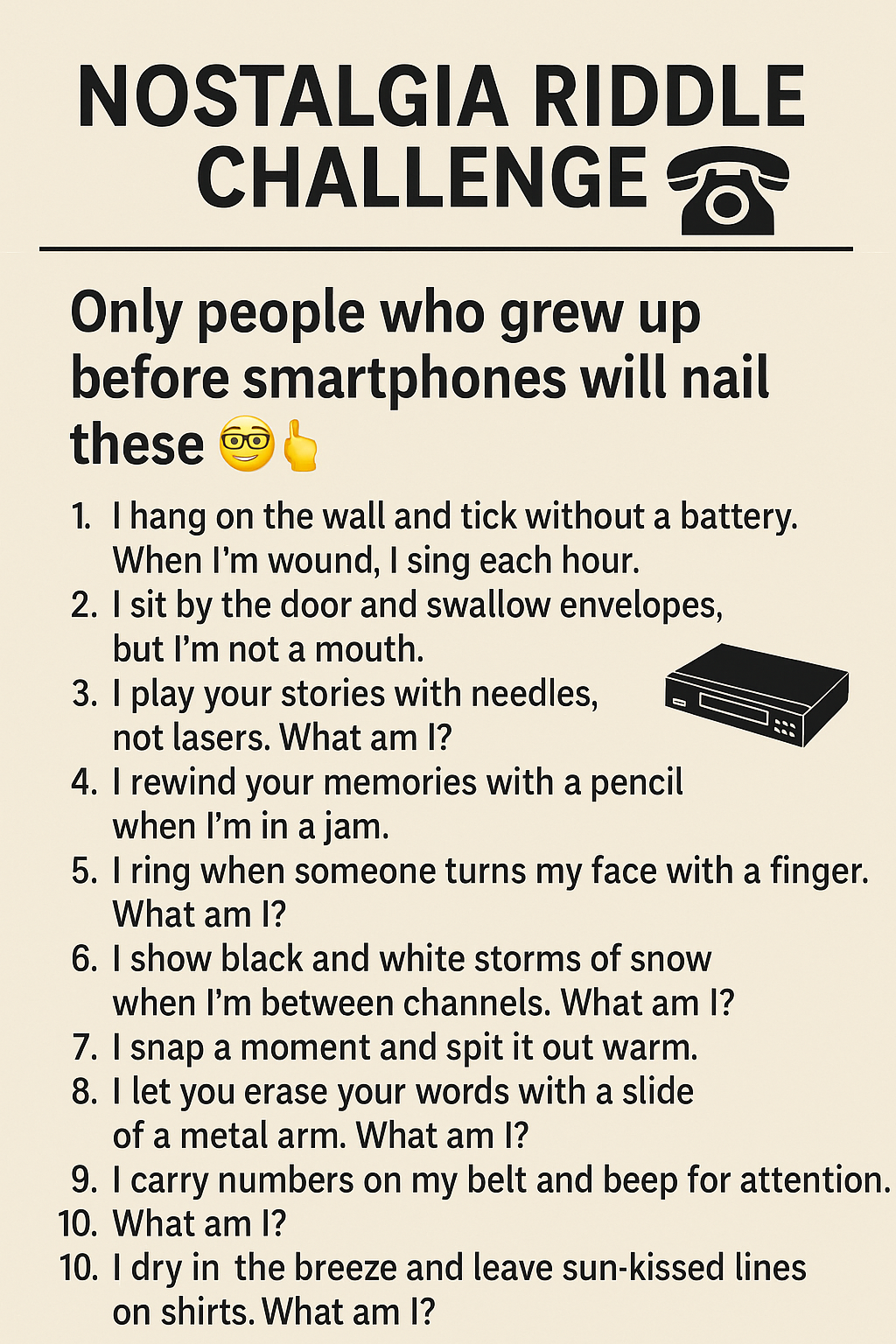 Remember the days before smartphones, Wi-Fi, and instant Google searches? Back then, we entertained ourselves with board games, riddles, and everyday objects that now feel like a time capsule. These riddles were designed to bring those memories back — and now here are the answers with a little walk down memory lane.
