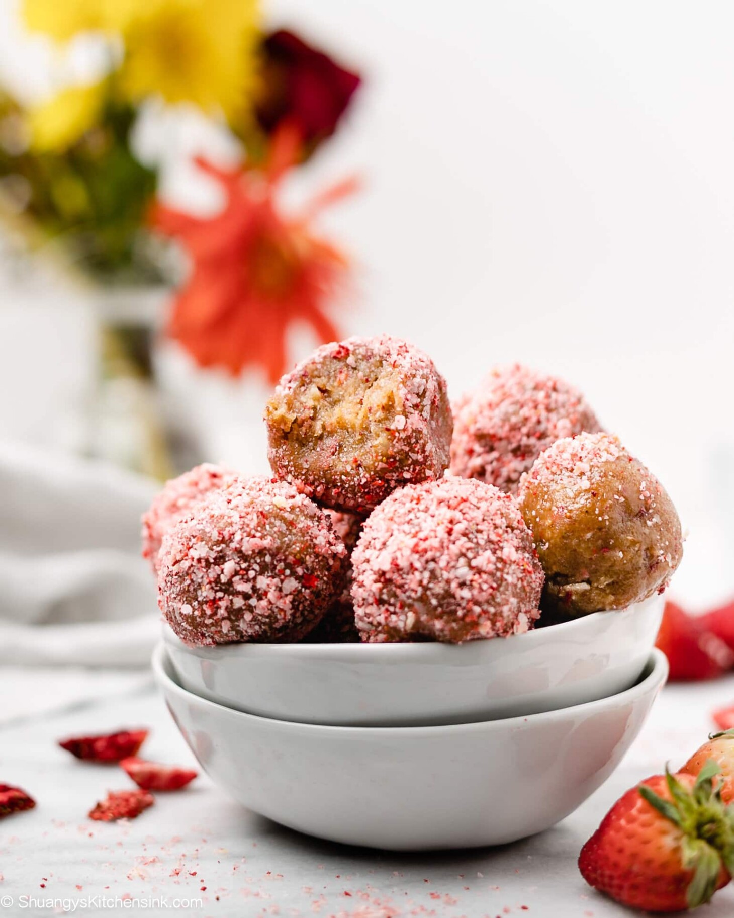 Strawberry Crunch Energy Balls {No-Bake}